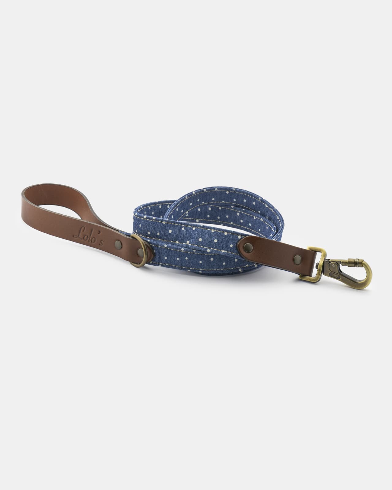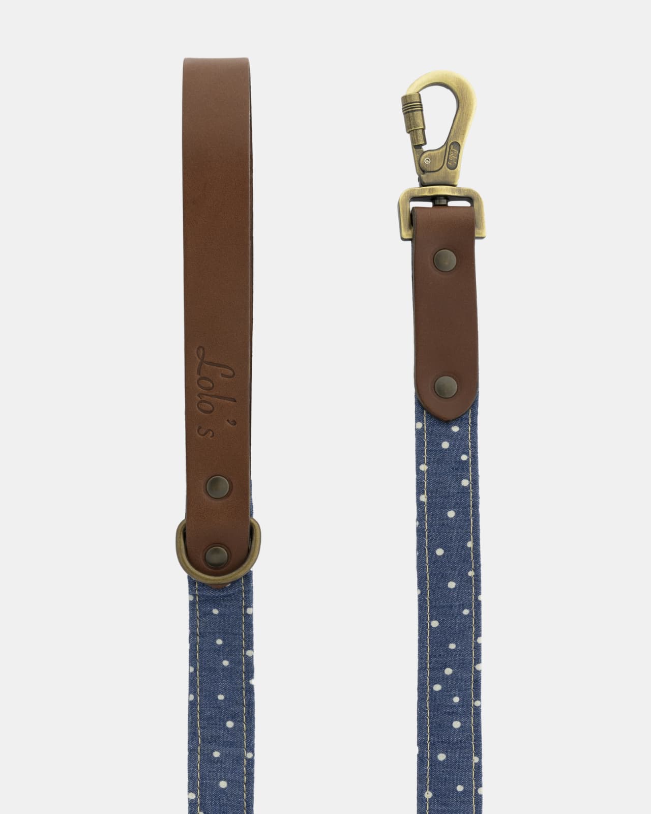 La parte superior incorpora un piquete metálico en oro viejo para colgar portabolsas, bebedero plegable o cualquier accesorio que necesites tener a mano durante el paseo. Además, el mosquetón de seguridad de alta resistencia y los herrajes en acabado oro viejo garantizan un enganche firme y un acabado coherente con el resto de la colección LOLO’S.